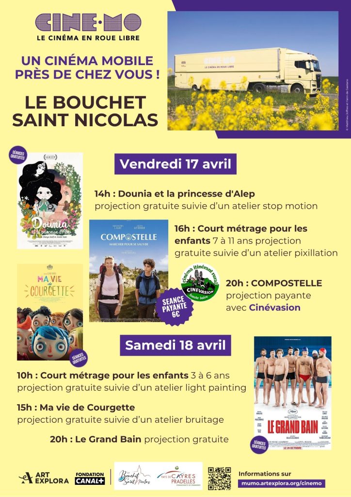 Le CinéMo sera présent du mardi au jeudi à Pradelles, sur la Place du Foirail, puis du vendredi au samedi au Bouchet-Saint-Nicolas.